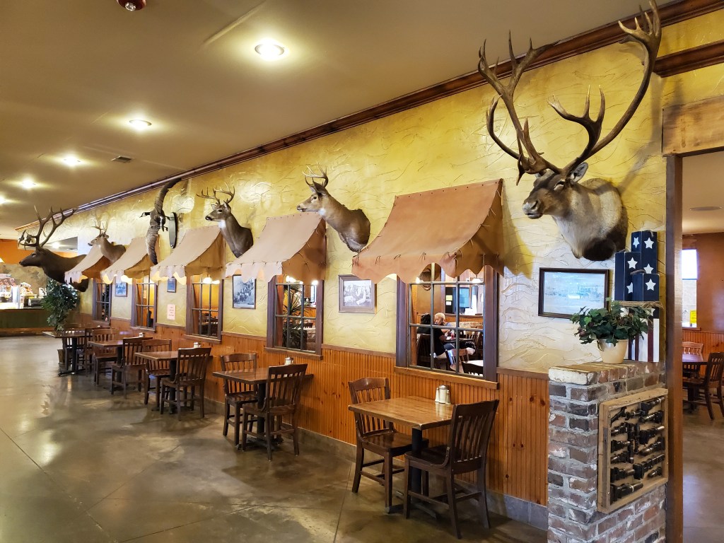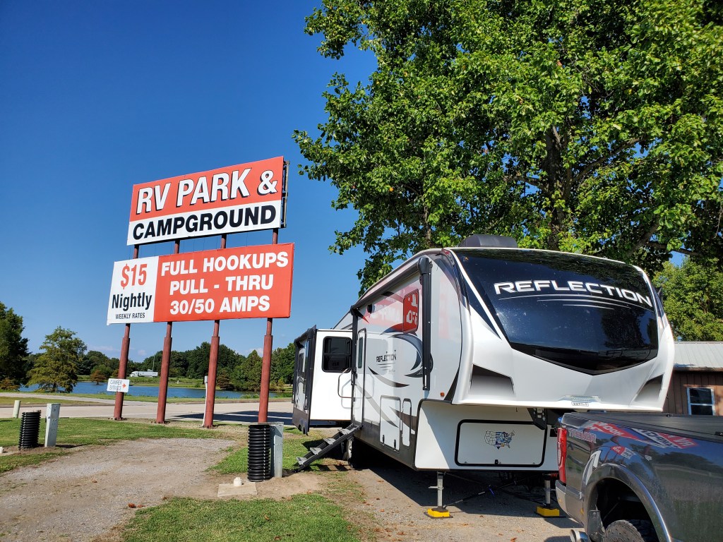 The next stop on this transit was to “Boomland” just outside of Charleston, MO. If you are familiar with our description of Wall Drug from our Badlands trip, you will understand when I say Boomland is a miniature version of Wall Drug. It is an all-in-one tourist stop for souvenirs, fuel, fireworks and food at their restaurant. The one addition over Wall, and the reason for our stop, is the no frills, but more than adequate full hook-up RV park. For only $15 a night, it is hard to beat for an overnight stay. We ate at the family style buffet restaurant – food was great! Fuel was competitively priced, and we picked up a couple of souvenirs! Easy in . . . easy out!