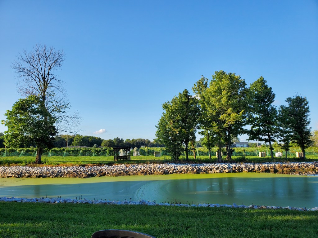 Our final stop before Elkhart was at a Harvest Host location called the “Sleepy Creek Vineyard” in Fairmount, IL. Sleepy Creek is a scenic winery just outside of town that grows and processes their wine on site. What we tried, we liked and purchased a couple of bottles for the road. We also hit the winery on “Wieners and Wine” Friday. Sleepy Creek provides the hot dogs and a fire – we buy the beverage! It was an incredibly popular event and they also had live music that night. We talked to the owner, Eric, later that evening and he said it was one of the largest – if not the largest turn-out they have had in years! Great night for all and a wonderful Harvest Host. We will look for a way to get back there in future travels!