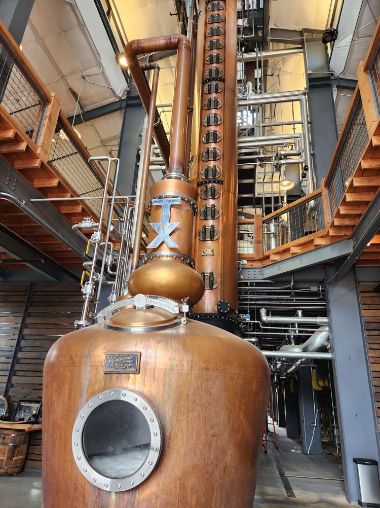 All of the interesting information aside, our knowledgeable and entertaining tour guide, Tracy, led us around the facility where we saw the distilling tower, the storage vats, the fermenting towers, the bottling plant and the barrel barns. It is quite the science and of course we got to sample the various flavors to finish the tour. New to us was the fact that TX released its first bourbon in 2016 and has various infused flavors currently for sale. Tina was quite excited about their Cognac infused and the Barrel Proof flavors. We may have picked some of those bottles up for later consumption to be sure we really like them! 😉 Of course we will share!