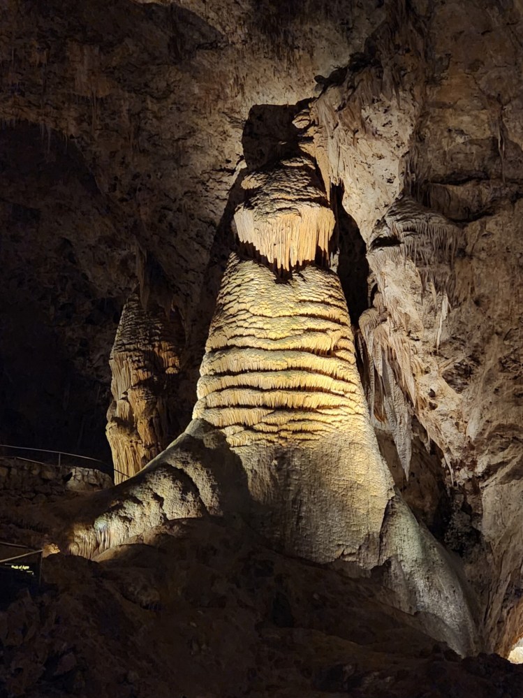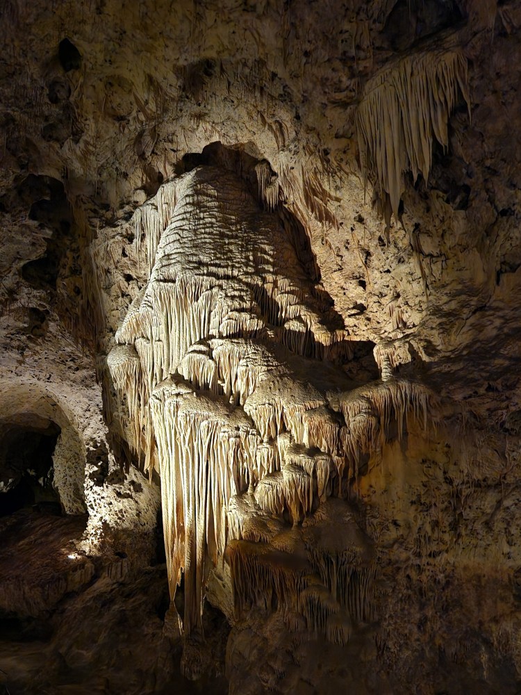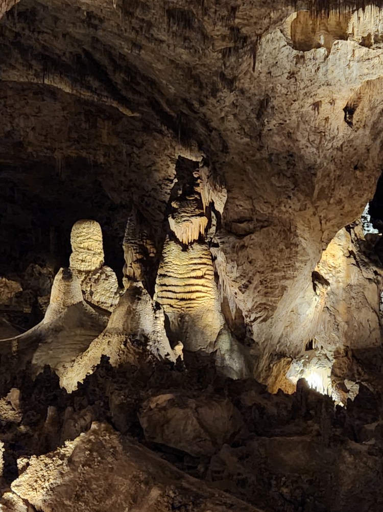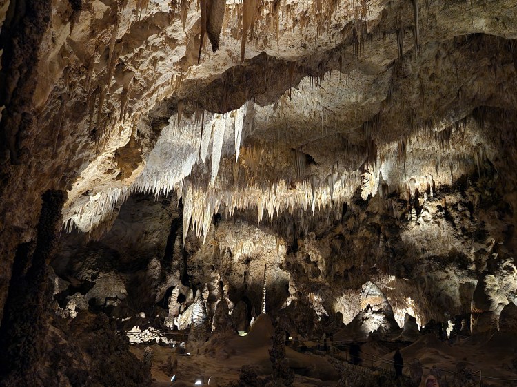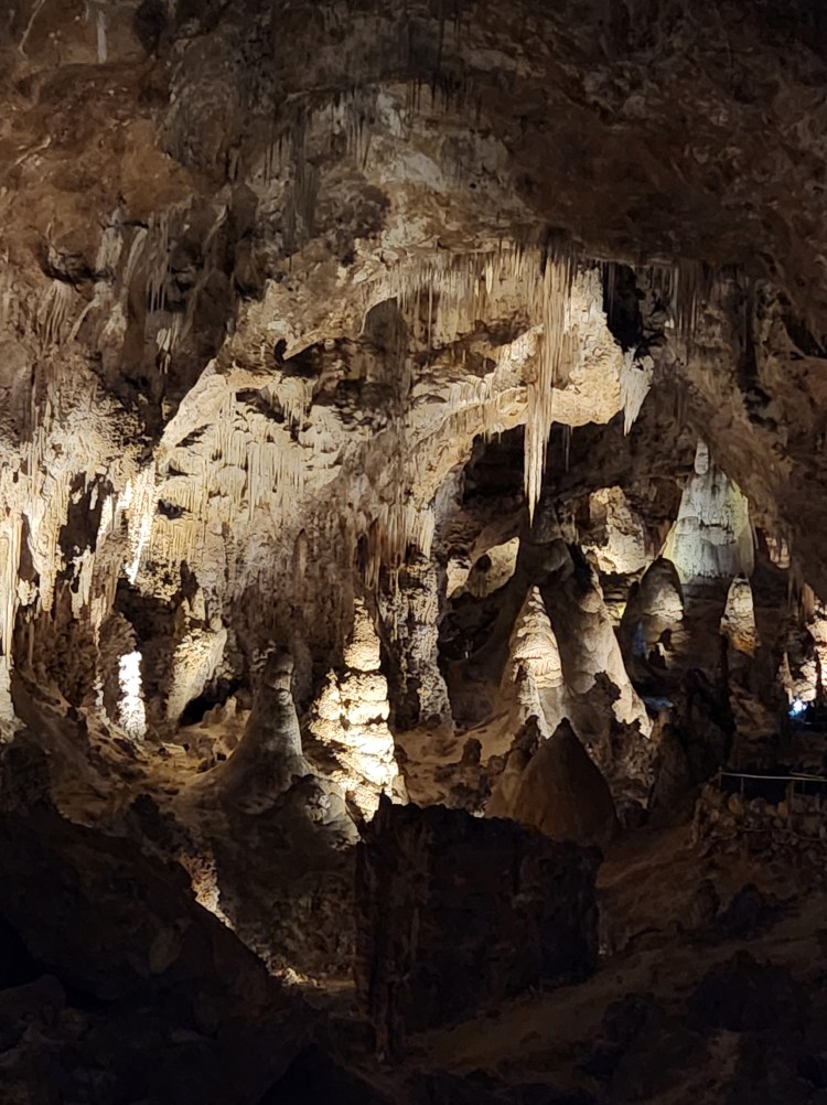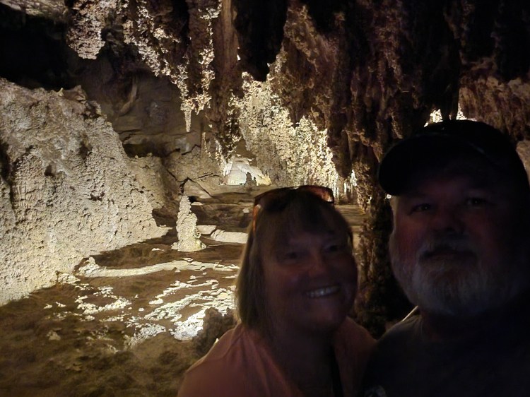 On our final day, we visited the reason for this stop – “Carlsbad Caverns National Park” about half an hour south of camp. The weather was awesome and the drive was scenic for it being in the middle of the desert! Scenic . . .but barren! The caverns on the other hand were spectacular! This year is also the centennial anniversary of caverns which was started in 1923. Doubtless, there have been many changes since then, but the self-guided tour we took today was incredible. I will attach way too many pics with this article, and I am sure I did not do the actual experience justice. Being 800 feet underground in these cathedral rooms and formations is memorable and will be the highlight of this stop.