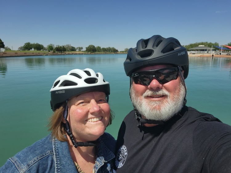 As you know, (pretend you do), we do like to get in a nice bike ride when we can and where there are prepared bike trails. Carlsbad is no exception and there are several choices. We chose the Riverwalk Trail which follows the shoreline of a small lake formed by a dam on the feeder river (Pecos?) just on the edge of town. It was an easy, scenic drive with parks, a beach and a couple of eateries. The potential that I mentioned earlier goes to the pollution in the water and opportunities for other businesses to fill vacant storefronts. There were numerous species of ducks and geese along the drive as well as much fishing, so the possibilities are there. It would be nice to see the water cleaned up because it would make a 1000% difference in the appearance! Otherwise, the weather was perfect and the ride was easy!