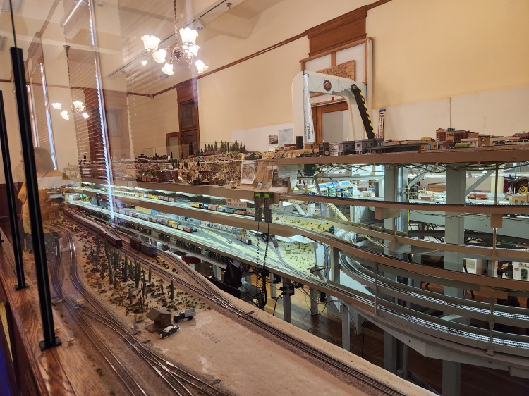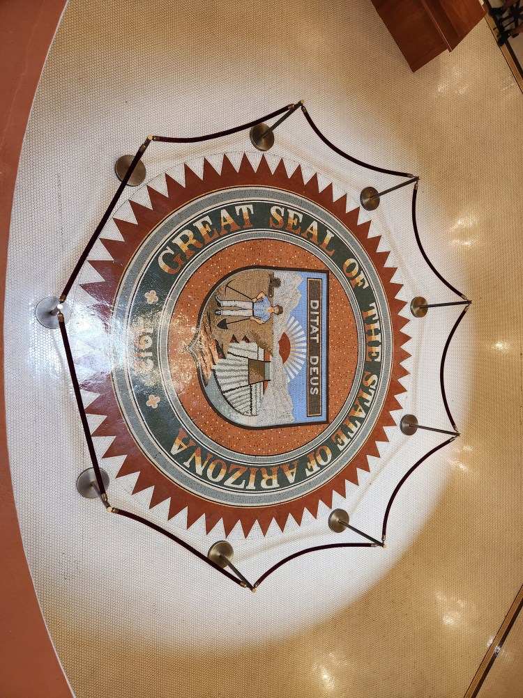 The “Arizona Capital” was adorned with a beautiful copper dome – made from Arizona copper, of course. The Seal of the Great State of Arizona welcomed visitors into the Rotunda that continued up the four floors of a museum telling about the history of the state. Part of the museum included a nearly indescribable model train set that represented several of the major cities throughout the state. Constructed of four levels and covering an entire room, the model with several running trains is a sight to behold!