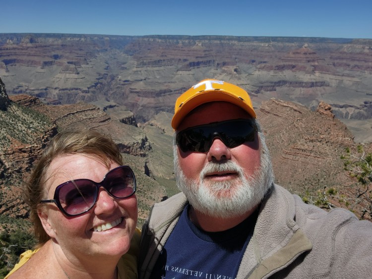 Our next lunch was at the “El Tovar Hotel”. Food, service and company was outstanding! We were graciously invited to share a table with a couple we met on our bus tour. “Jim and Jasmine Tritten” were a true pleasure to meet and get to know during the tour and over lunch. Jim is also a former Navy Tailhooker, and along with Jasmine are both accomplished authors and bloggers! We had a great time chatting and look forward to seeing them again later in our trip! Again, the food was top notch – beef stroganoff for Tina and I had the Elk Burger! Delicious!