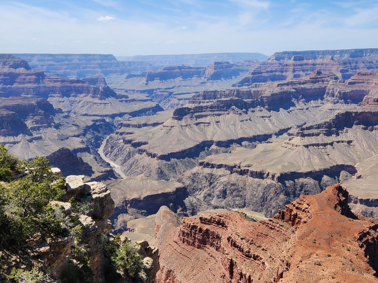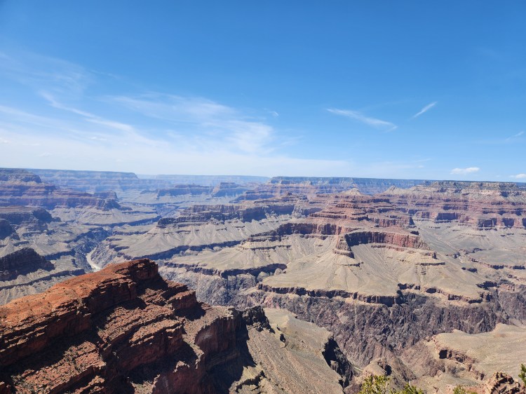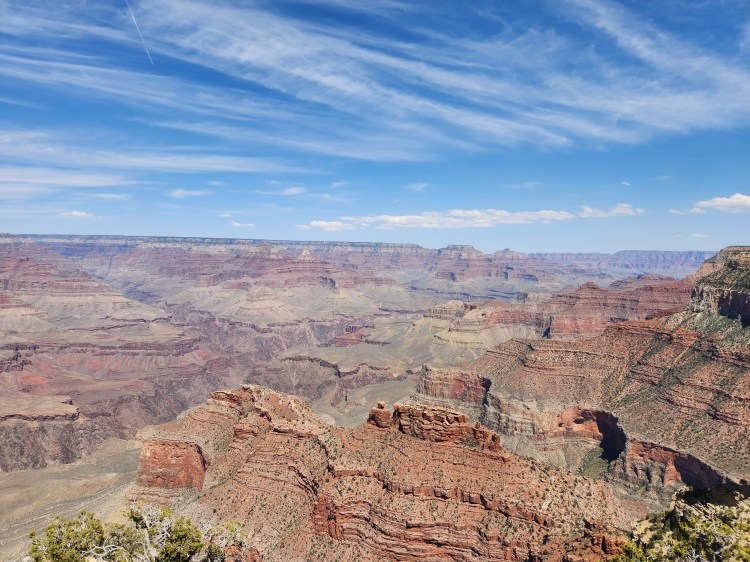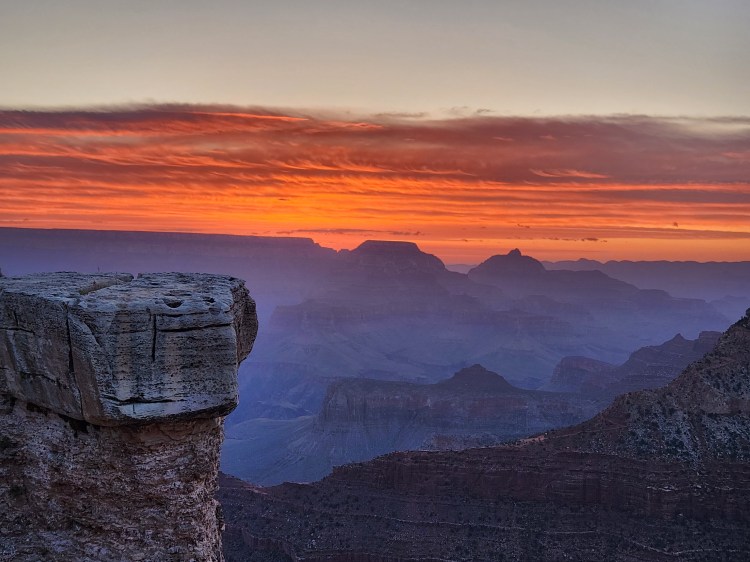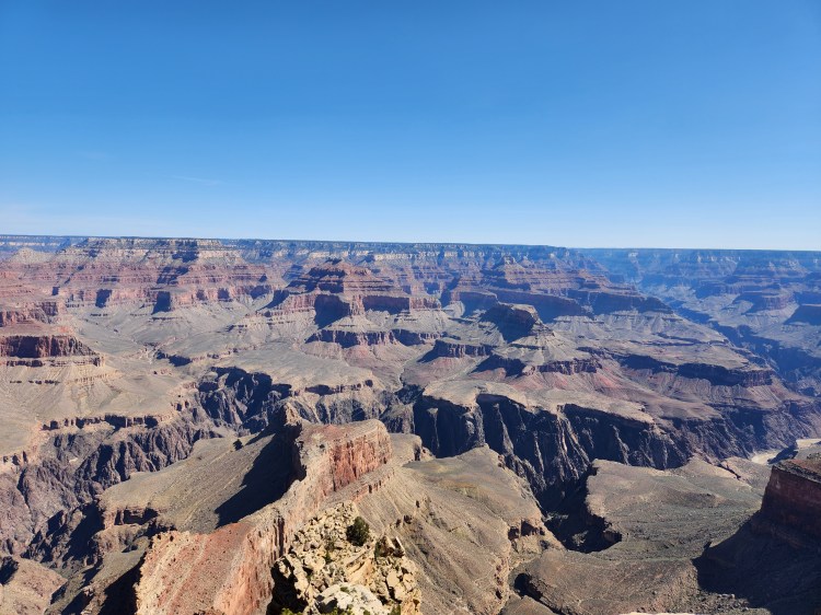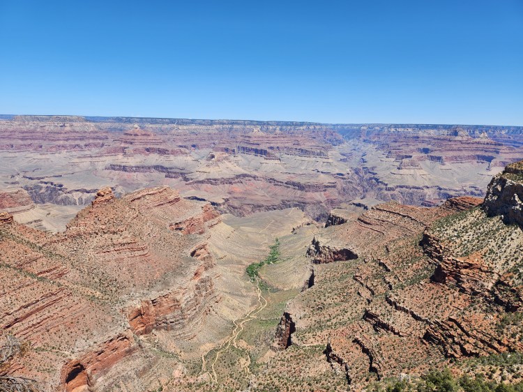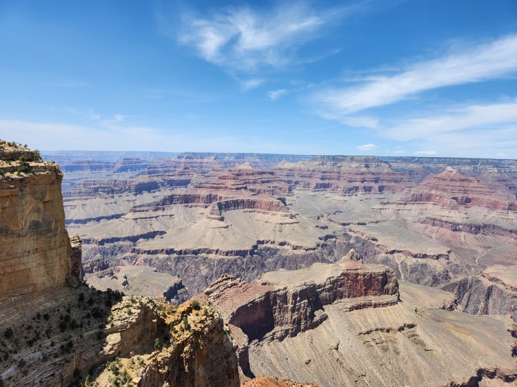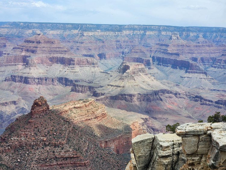 As mentioned, the NPS offers a free shuttle service for the 14-mile stretch of the Rim Trail from Hermits Rest to Yaki Point. Hermits Rest is on the Western end of the Red Route which starts/stops at the Grand Canyon Village at a transfer from the Blue Line. The Grand Canyon Visitors’ Center (main parking lot) is at the other end of the Blue Line where you can pick up the Yellow Line East or West. The Yellow Line East takes you to Yaki Point, which is the furthest eastern viewpoint serviced by the park shuttle. The views from every stop are amazing and they are all different as witnessed by well over 200 photos taken by me! What did I say earlier – breath taking!