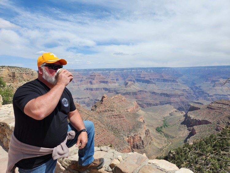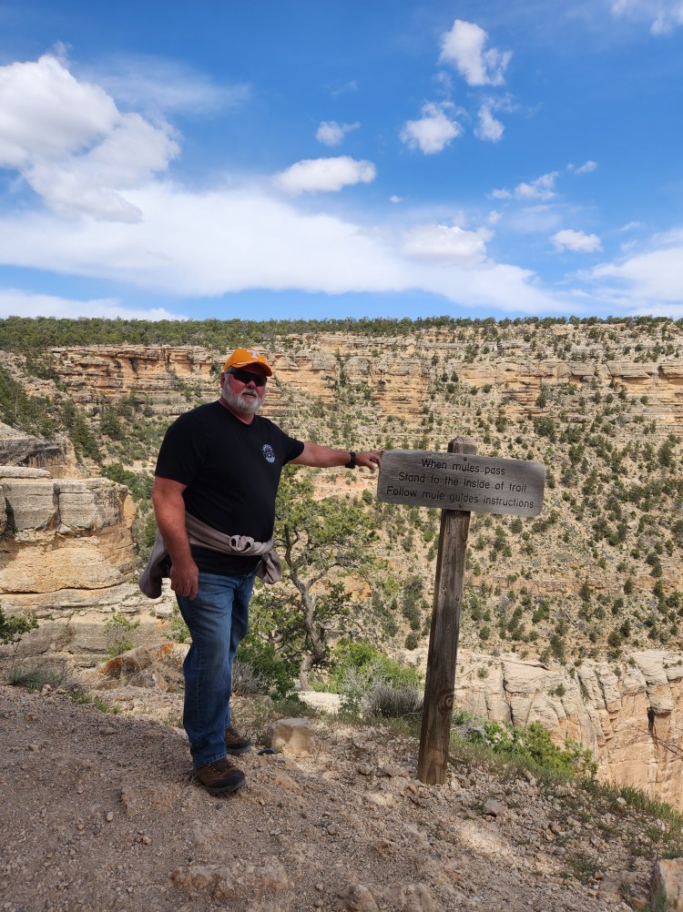 On our second day, we did take a scheduled 2-hr tour by motor coach with a guide/driver to the western edge of the “Rim Trail” to a point called “Hermits Rest.” In hindsight, I probably would not have done that except for the fact that the driver, Scott, was an excellent tour guide! His grasp of the history of the Canyon and other facts and figures about the same was remarkable! Add to that, he possesses a good sense of humor, so it was a good combo! My hindsight hesitancy is that the National Park Service provides a free shuttle service along the exact same route and includes several more stops not visited during the tour. Tina calls it a toss-up and while I mostly agree with her, the guided tour was not free! The views were certainly the same! 😊