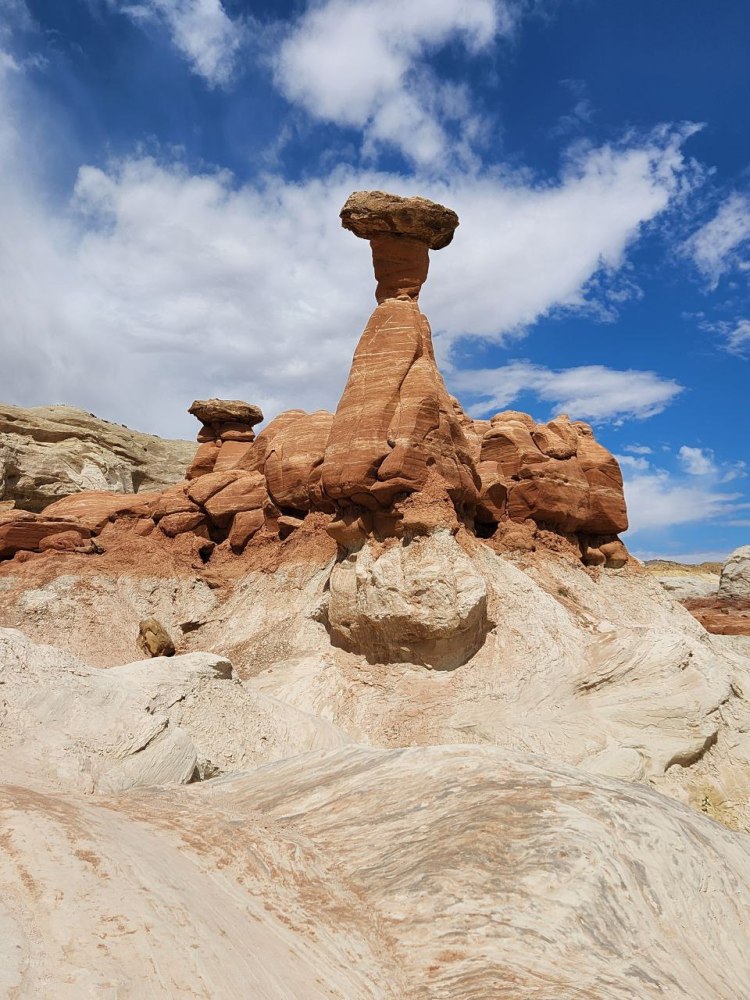 After running a couple of shopping errands, it was time for lunch. Fortunately, we discovered yet another “Grand Canyon Brewing Company” location in Page. Their pizza and pilsners never disappoint, and we walked away happy campers! 😉 After lunch we meandered our way back toward Kanab with several stops for photos and one more relatively short hike to see the “Toadstools” Hoodoo formation. Located about halfway between Kanab and Page, the Toadstools are in the “Grand Staircase-Escalante National Monument’s” Red Canyon.’ Again, an easy hike and worth the view once you get there!
