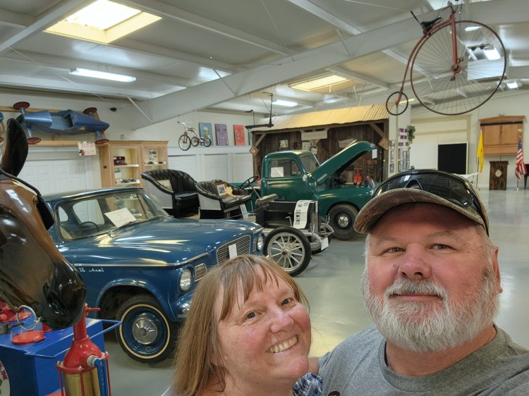 We started our day of exploration with lunch at the “Rib Crib BBQ” restaurant. They have been ‘slinging the good BBQ since 1992.’ BBQ always seems like a roll of the dice and being somewhat of an accomplished BBQ cook myself, my standards are pretty high! 😉 I am happy to report that the food did not disappoint! My brisket, pulled pork, sausage sandwich was delicious, and Tina’s ribs were falling off the bone tender and quite tasty! The variety of sides was also very good! It was a great start to the afternoon!