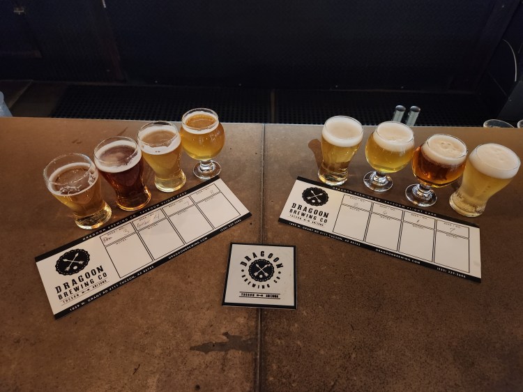 After assuring we had the food absorption amply addressed, we proceeded to the “Dragoon Brewing Company” to sample the local craft beers. Again, we were not disappointed and after going through a combined two flights of samples, decided our favorites were the ‘Santa Cruz’r Golden Ale’ and the ‘Dragoon Pils American Pilsner.’ Both were tasty and not too filling!